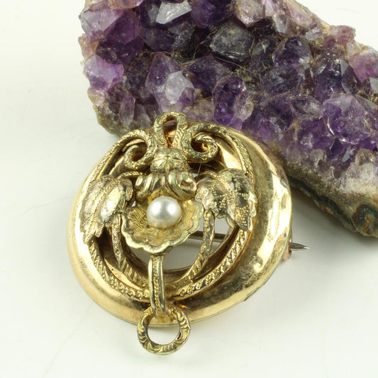 Antik broche af rød og hvidguld 14K ca. år 1930