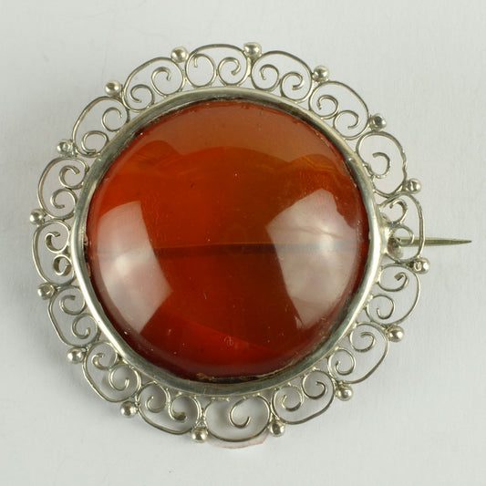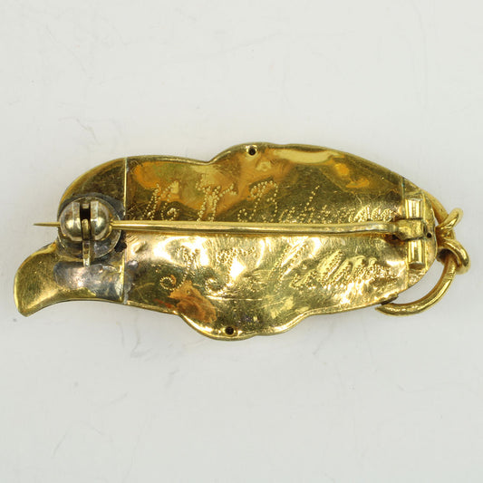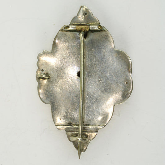 Antik broche af forgyldt sølv med emalje ca. år 1930