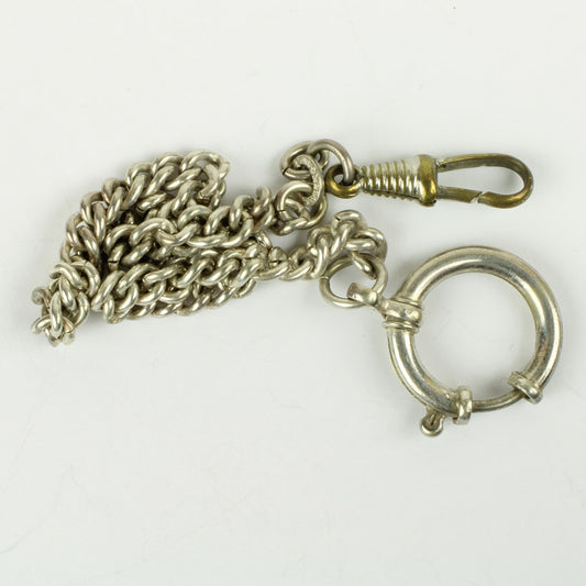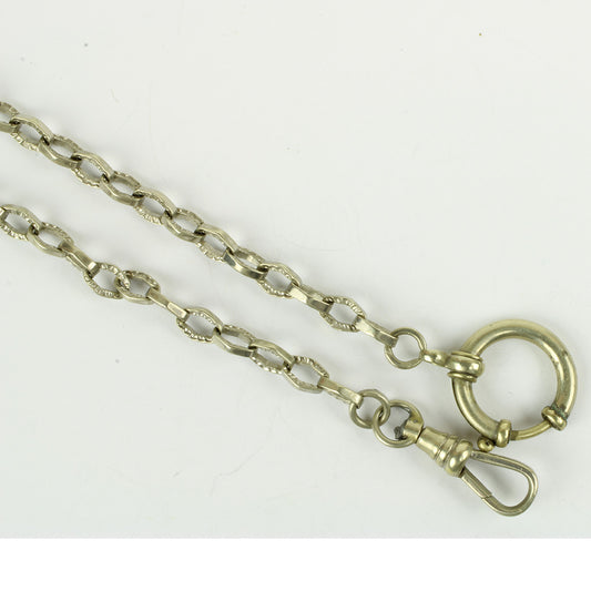 Antik kort herre urkæde af hvidt metal