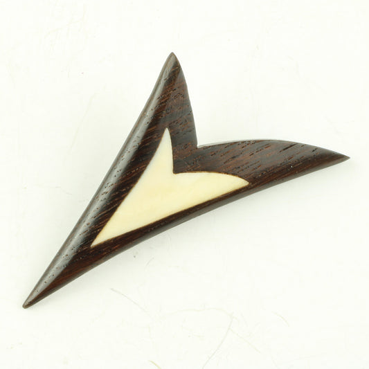 Broche af teaktræ med indlagt ben