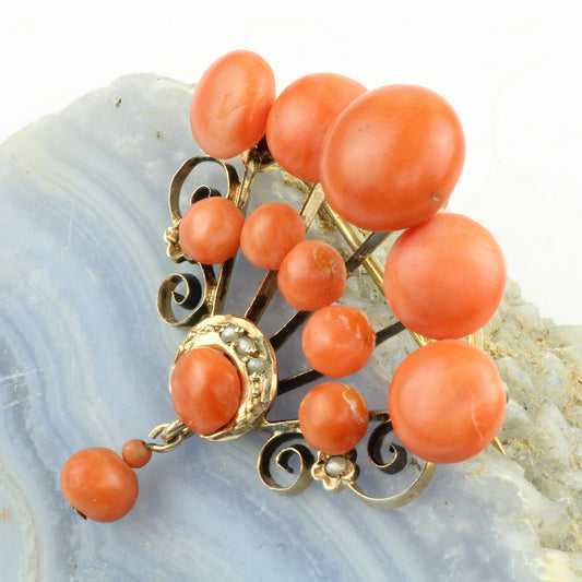 Koral broche 8K guld