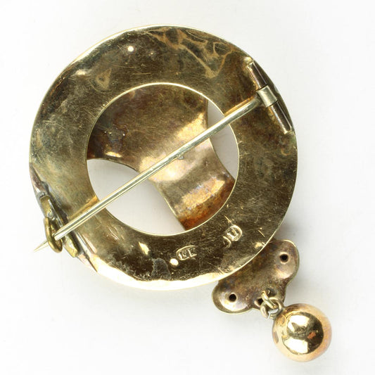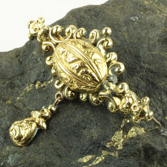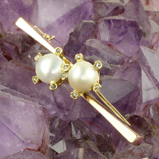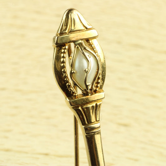 Antik fakkelformet broche med perle af 8K guld ca. år 1890
