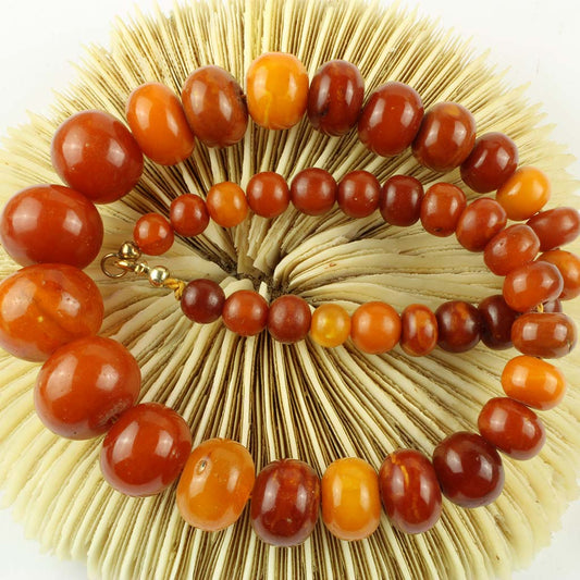 Halskæde af håndslebne ravperler fra Vesterhavet