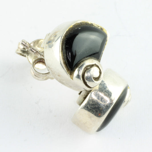 Ørestikker af sølv med onyx