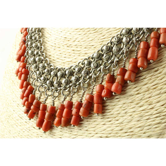 Antik Nordafrikansk halskæde af sølv med koral