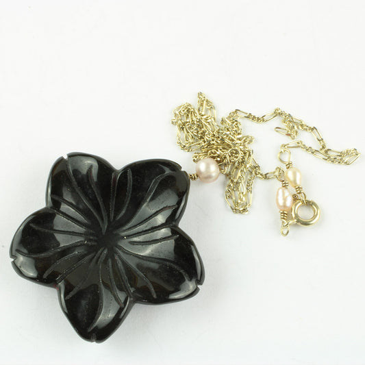Blomst af onyx i halskæde af forgyldt sølv